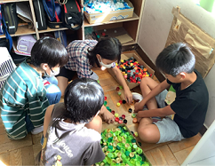 特別プロジェクト(キャップアート)チームは、6人です。キャップアートチームは音貝小学校のみんなから集めたペットボトルキャップでオトカゲのアートを作って創立50周年記念を盛り上げようと企画しました。
