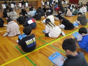 2月13日(金)1限、来年度の前期児童会役員を決める選挙が行われました。新6年生からは4人の枠に7人、新5年生からは3人の枠に6人が立候補し、応援責任者とともに、新4~新6年生に向けて演説をしました。今回から、投票用紙による投票から、タブレット端末を使った投票に変更しました。
