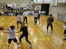 3月3日(火)、バスケットボール部のお別れ試合を行いました。6年生を中心にしたチームが先生チームと対戦しました。保護者の方も見守る中、2コートで熱戦が繰り広げられ、大変な盛り上がりでした。