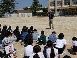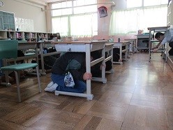 4月14日(火)2限、避難訓練を行いました。震度5強の地震を想定し、机の下に隠れる一時避難、指示のあとに運動場に集合する二次避難を行いました。子どもたちは教科書などで頭を守りながら落ち着いて避難していました。
