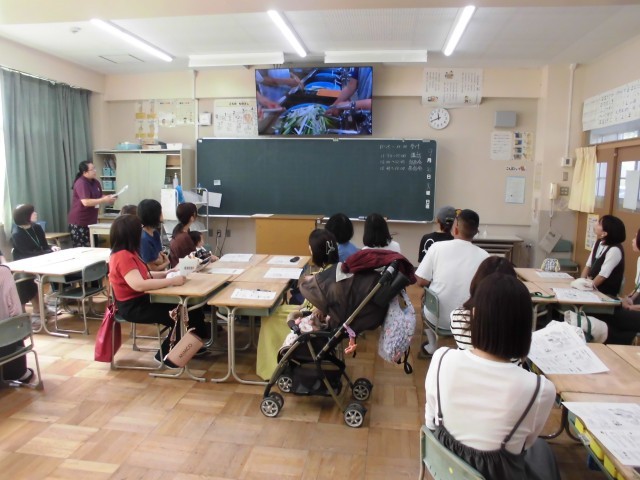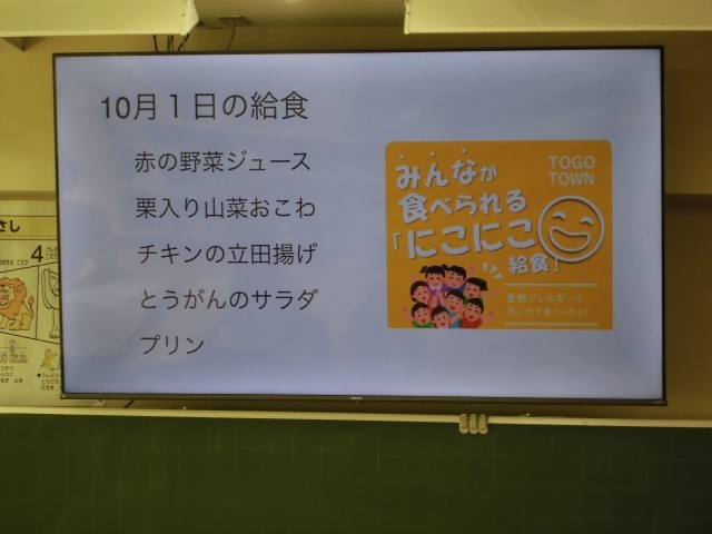 10月1日(水)にPTA教養部主催で「PTA 給食試食会」を行いました。初めに、栄養教諭から東郷町の学校給食について話をしました。東郷町の給食センターでどのように給食が作られているのかを画像で紹介したり、保護者の方からの質問に答えたりして、給食について知っていただきました。そのあと、参加された保護者の方で配膳をし、みんなで楽しく試食をしました。今日のメニューは食物アレルギーに対応した「にこにこ給食」で、保護者の方にも味わっていただきました。たくさんの保護者の皆様にご参加いただき、ありがとうございました
