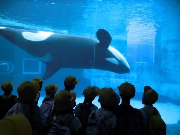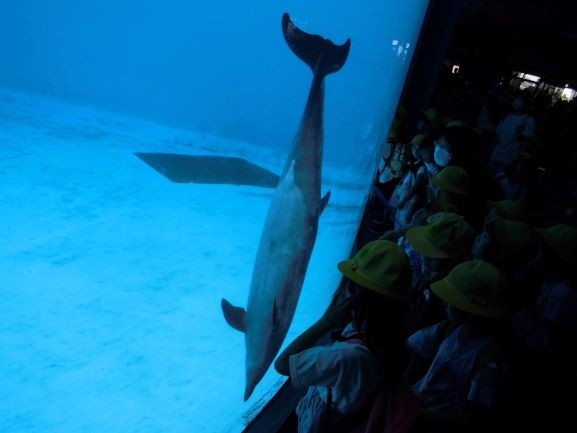 10月7日(火)に、1年生が名古屋港水族館に行きました。子どもたちは、イルカやベルーガ、シャチを見て、その大きさや人懐っこさに目を輝かせていました。イルカショーを見学した際には、圧巻のパフォーマンスに驚きの歓声が上がりました。昼食時には、おいしいお弁当を食べて笑顔があふれていました。班別行動では、カレイやヒラメ、チンアナゴといったかくれんぼが上手な生き物をたくさん見つけることができました。みんな、大喜びの校外学習となりました。