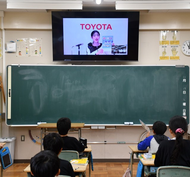 11月18日(火)に、5年生の社会科「自動車を作る工業」の学習の一環で、トヨタオンライン授業を行いました。案内役の方がテレビ画面から高嶺小の5年生に向けて話しかけ、双方向で対話をしながら、学習を進めました。「日本の自動車産業」や「自動車の製造工程」、「仕事をする上での工夫」について、動画やクイズ、最後は5年生からの質問を受ける形で、学びを深めました。これまであまり経験したことのないオンライン授業だったので、子どもたちにとってはとても新鮮で、楽しく授業を受けることができました。