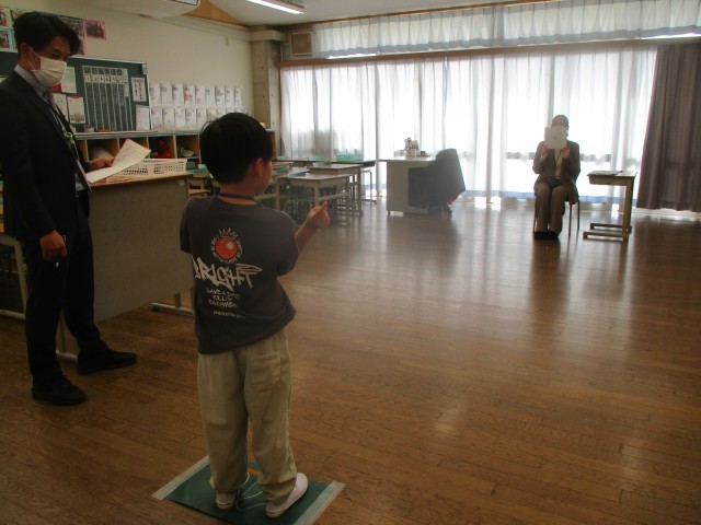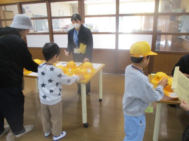 令和8年度に入学してくる園児たちが、就学時健診で兵庫小に来ました。園児たちは4月から通う小学校の校舎の中を、興味深げな表情で歩いていました。視力や聴力などの検査をしたり、内科や歯科の健診をしたりしました。帽子のサイズも確かめました。