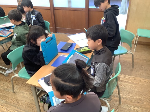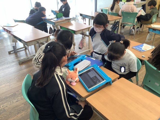 「東郷のまち発見(昔のくらしや仕事に注目して)」というテーマで、調べ学習を行っています。自分が興味をもったことについて、タブレットや本を使って調べ、まとめています。グループでどのような発表にするのかを話し合いながら進めています。当日は、是非、子どもたちの発表を見に来ていただけたらと思います。よろしくお願いいたします。