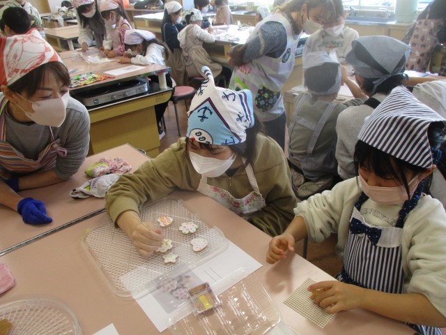 PTA主催の家庭教育推進事業の一環で、親子でアイシングクッキー作り教室が行われました。講師の方よりおいしいクッキーの作り方を教えていただき、カラフルなトッピングをしたり、爪楊枝で模様を描いたりしながら、すてきなアイシングクッキーを作りました。