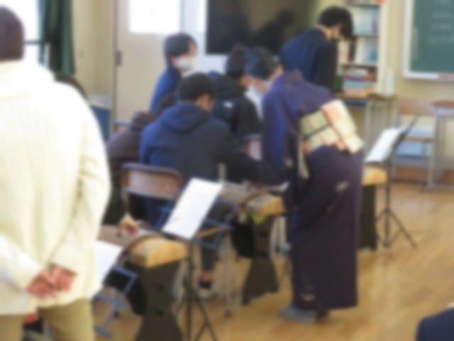 東郷中学校では例年この時期に箏の大師範である近藤直子先生をお招きし、1年生・2年生を対象にお箏教室を実施しております。北館4階は和の音色で満たされています。