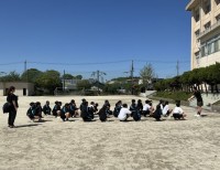 4月16日、1年生が体育で集団行動の練習を行いました。列になって並ぶ時の姿勢や並...