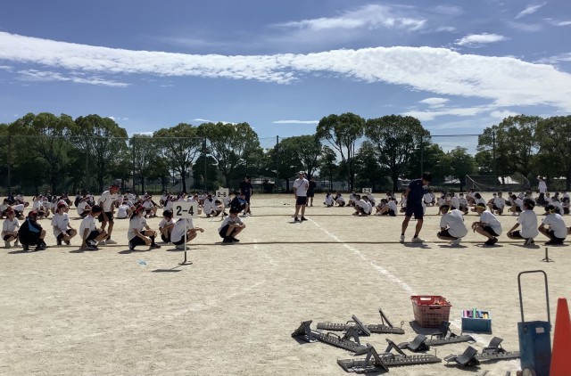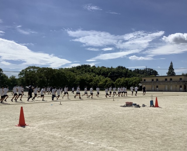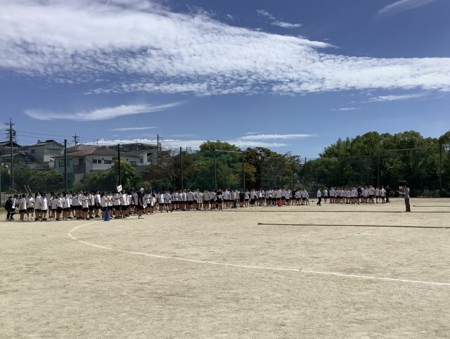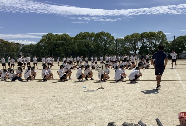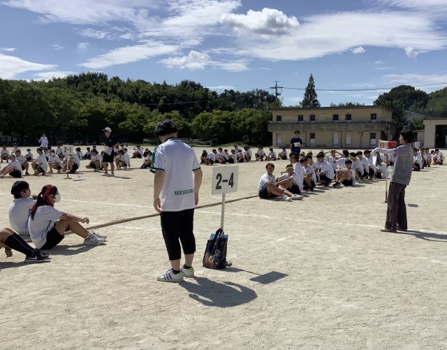 9月26日、2年生が体育祭に向けて、学年体育で綱引きの練習をしました。朝夕は涼しくなってきましたが、まだまだ昼間の日差しは強く、暑い日となりました.