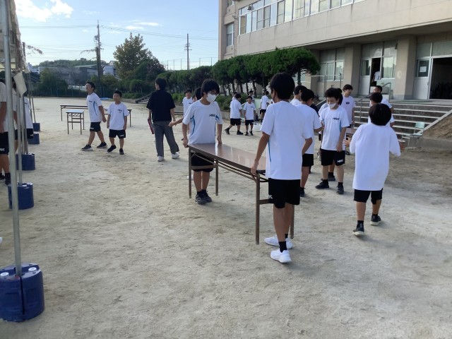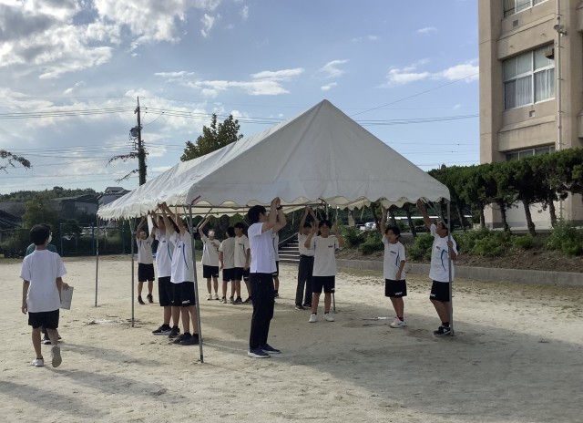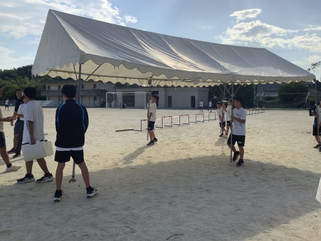 重いテントを建てたり、司令台、机や椅子、ハードルなど、協力して運びました。細かな物品も用意して、明日に備えます。1年生の皆さん、準備ありがとう。