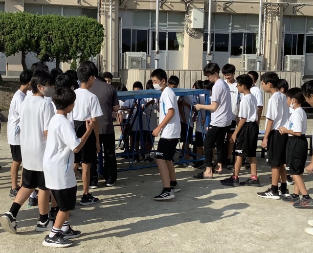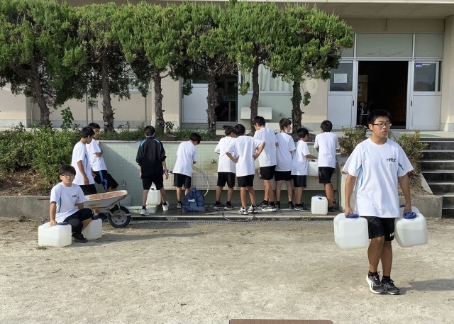一時的に雨が降ってきましたが、準備の時間には爽やかな青空がのぞいていました。早いものでもう10月です。いよいよ明日は体育祭です。5時間目の後、1年生が準備をしてくれました。