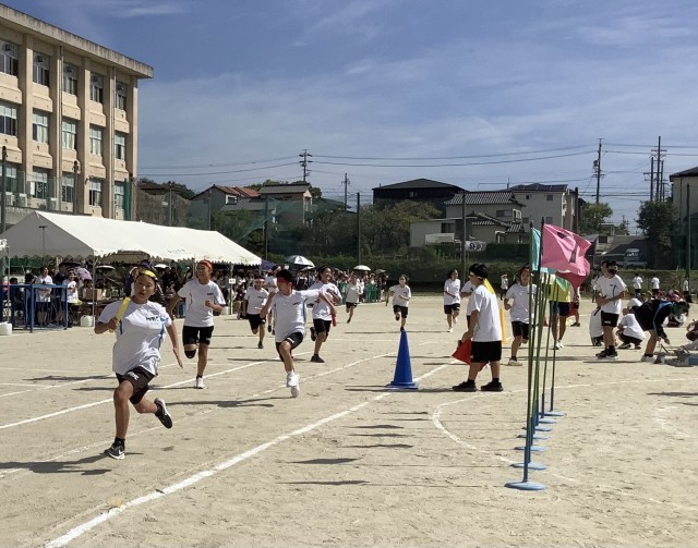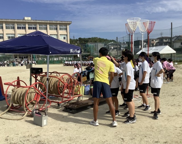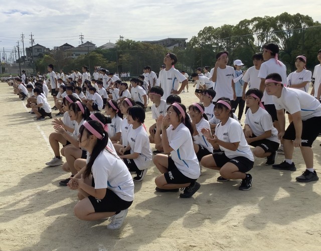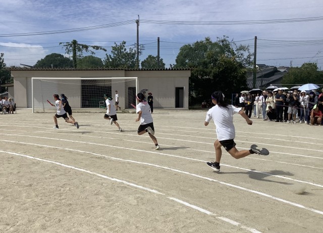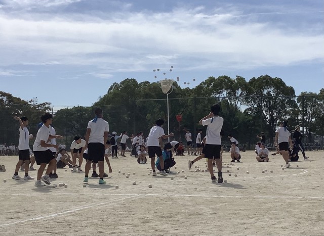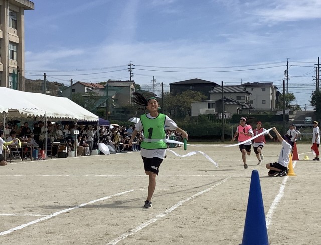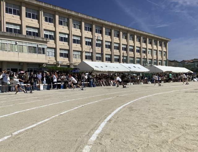 400mリレーでは、各クラスの選手が出場しました。スタートからすごい速さに驚きました。僅差でゴールするクラスもあり、手に汗握るレースとなりました。生徒席は大変盛り上がり、応援の大きな声が響いていました。いい雰囲気です。
