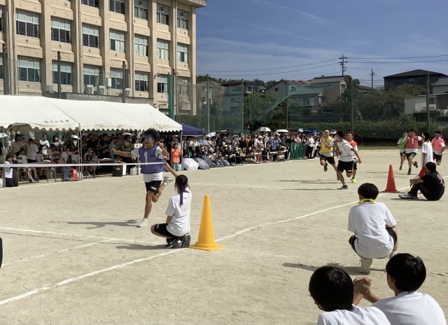 400mリレーでは、学年が上がるにつれ体が大きくスピードも早くなり、3年生男子ではかなりの迫力でした。皆頑張りましたね。