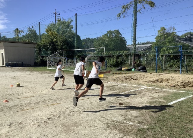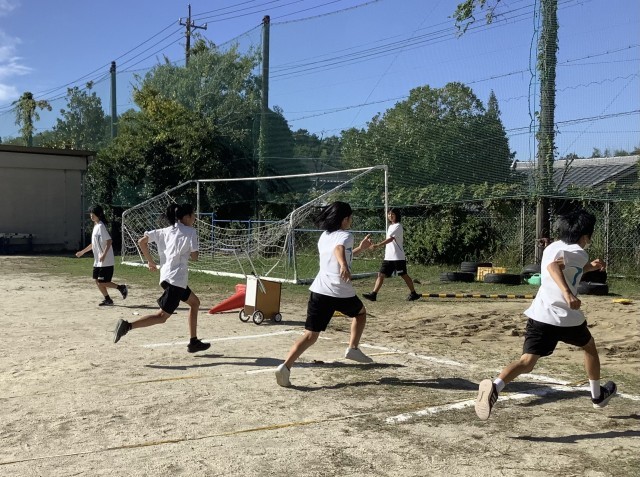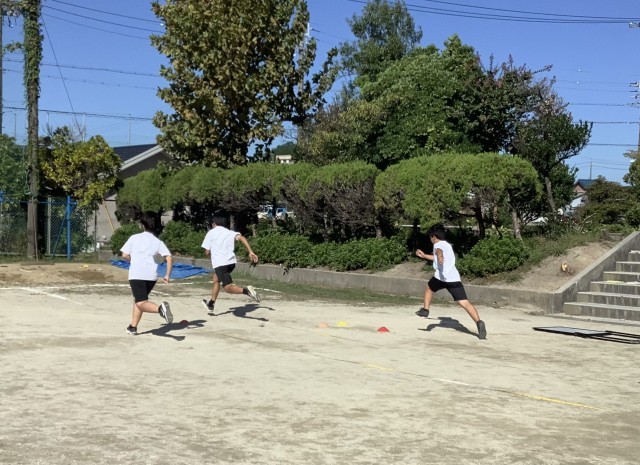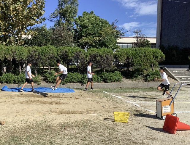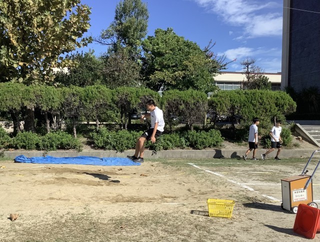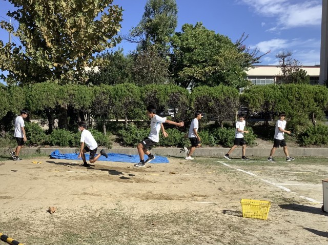 10月9日、2年生が体育で走り幅跳びを練習しました。今日は走り幅跳び2回目だそうです。