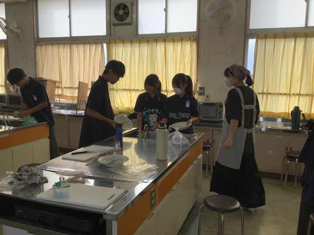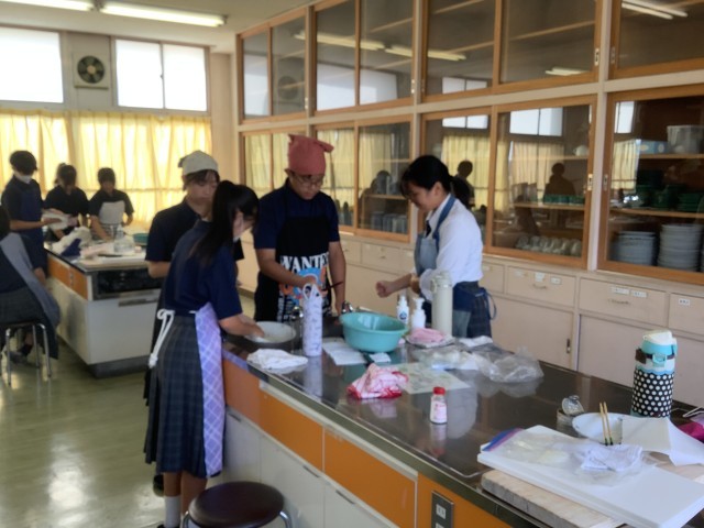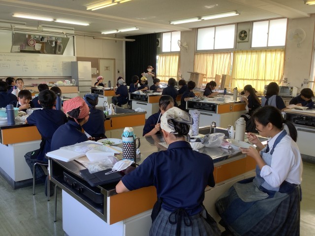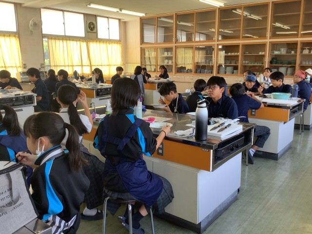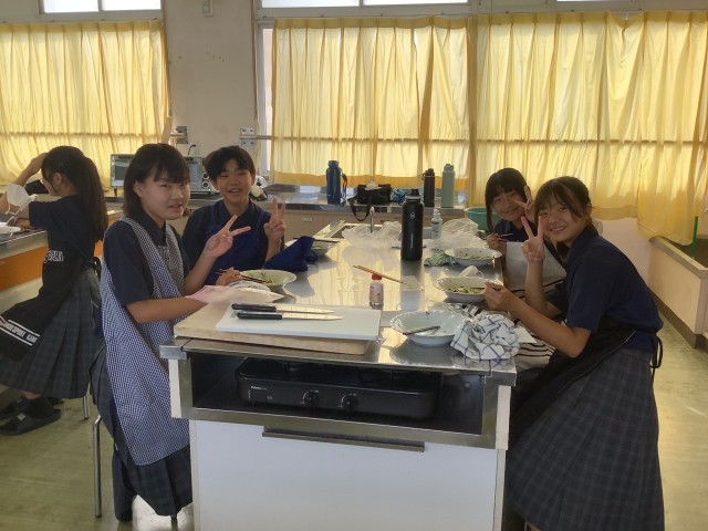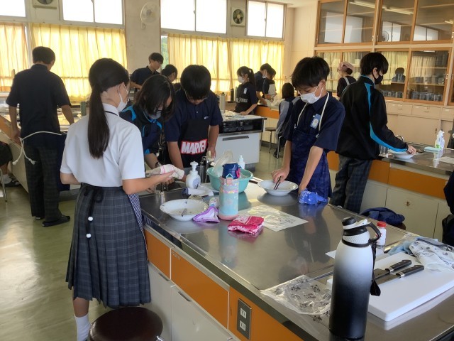 10月10日、1年生が家庭科で調理実習を行いました。メニューは「きゅうりとツナのサラダ」です。今週、来週の間に1年生のどのクラスも行います。