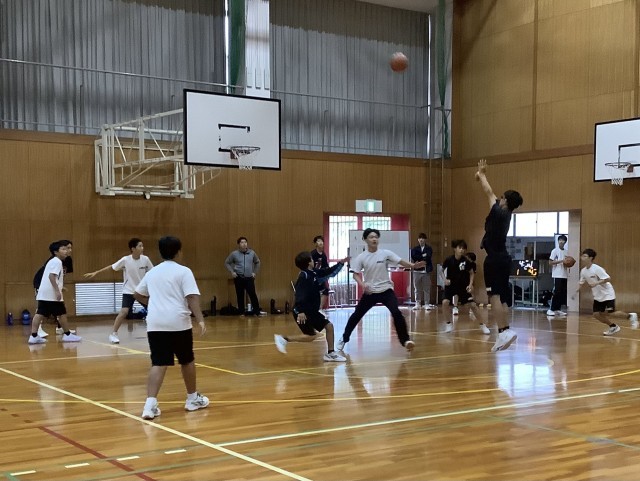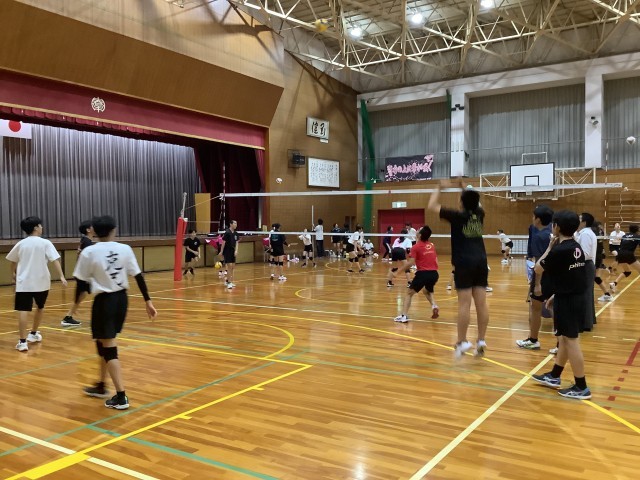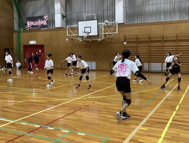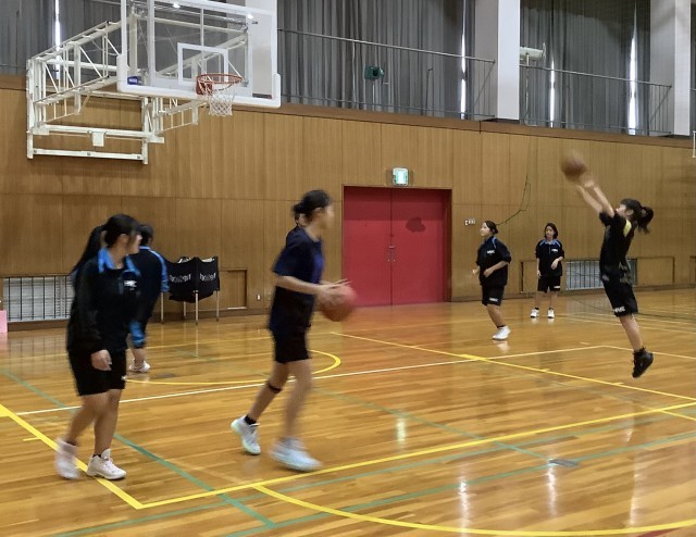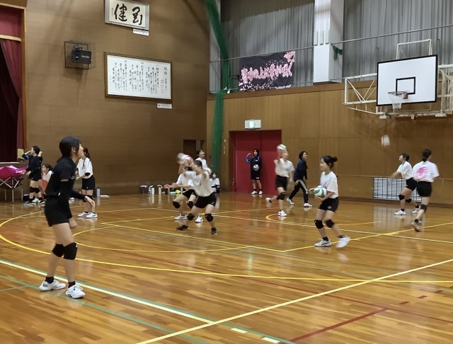 11月4日の部活動の体育館フロアの様子です。バスケットボール部やバレーボール部が所狭しと活動していました。とても活気があります。休日には大会で入賞するなど頑張っています。