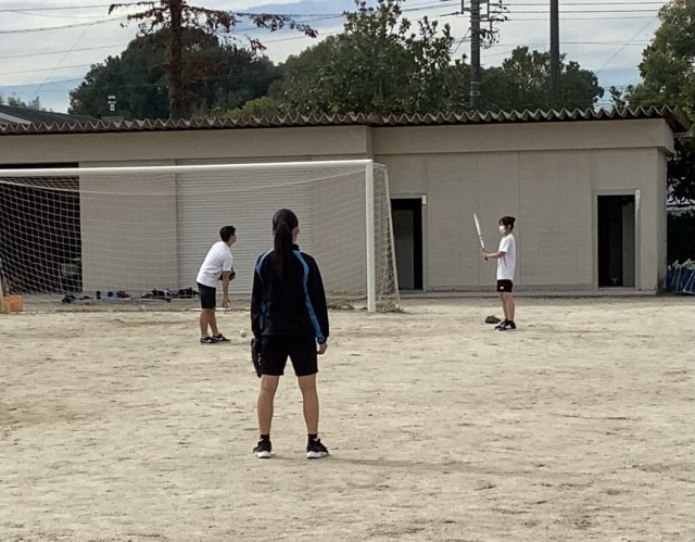 11月6日、3年生が体育でソフトボールの練習をしました。ソフトボールをするのは今日からです。