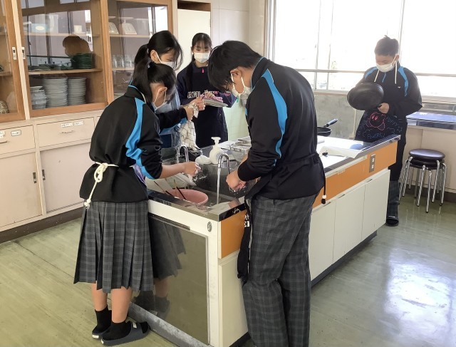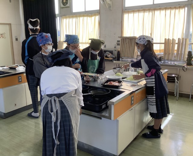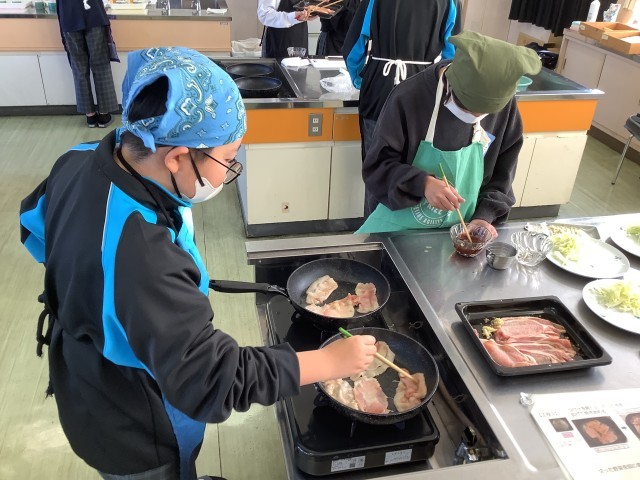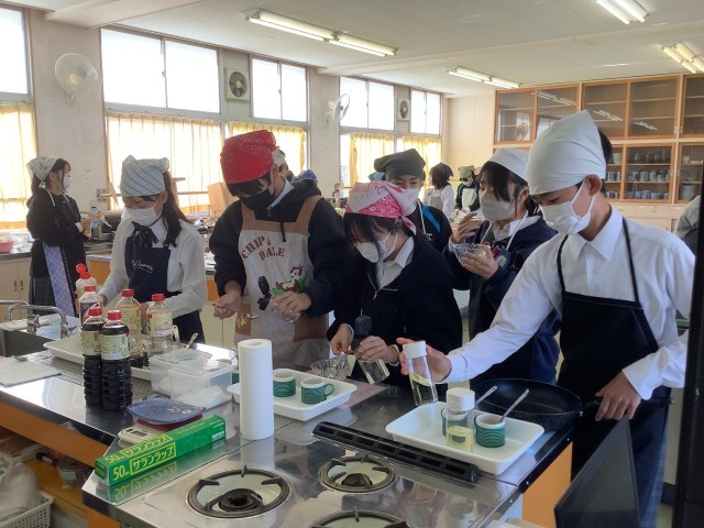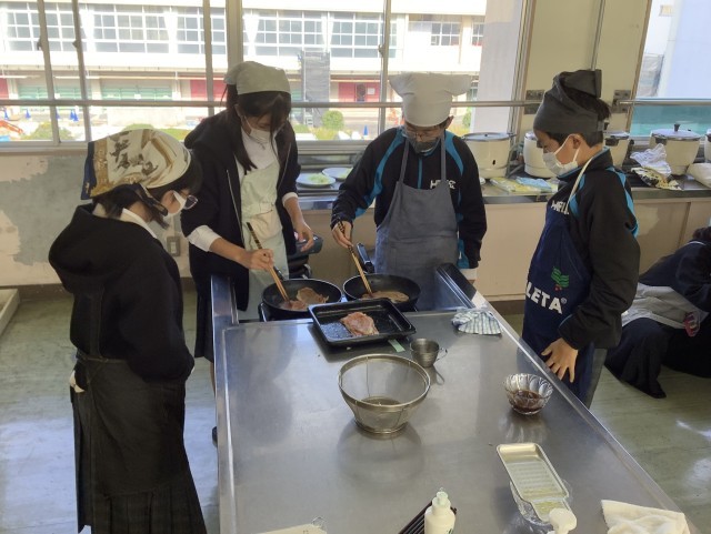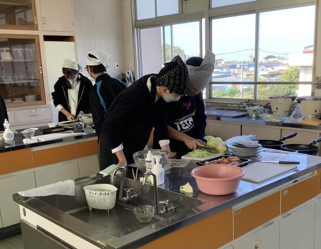 11月22日、1年生が家庭科で「豚肉のしょうが焼き」の調理実習を行いました。来週末までに1年生の各クラスで実施します。