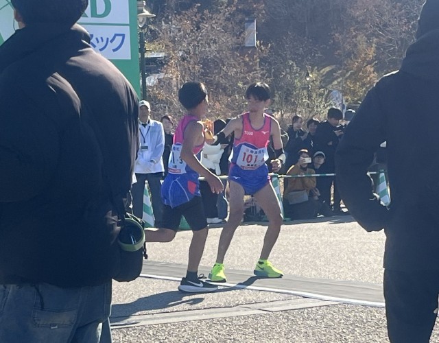 1区から9区までを小学生や中学生、高校生、一般の代表選手がタスキを繋ぎます。第1区は中学生女子で、宮島花さんが、第4区は中学生男子で得能光樹さんが力強い走りを見せました。とても頑張りましたね。お疲れ様でした。
