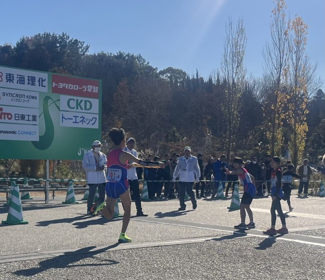 12月6日、とても天気のよい美しい青空の下、「第18回愛知駅伝〜愛・地球博20周年記念〜」がモリコロパークで行われ、東郷町のチームに春中生も代表として出場しました。