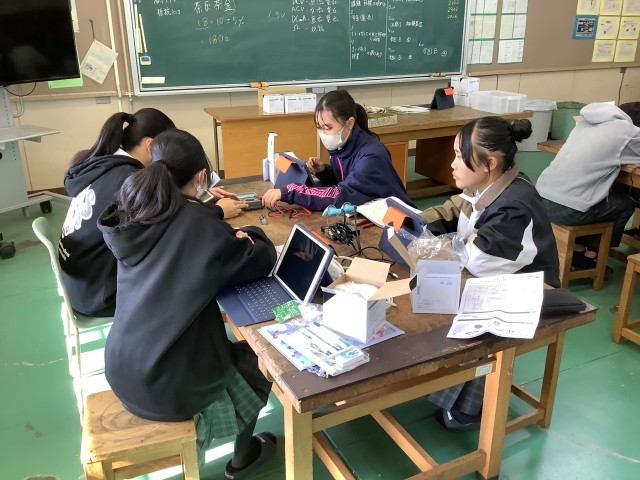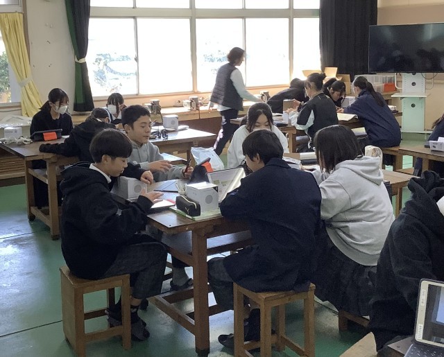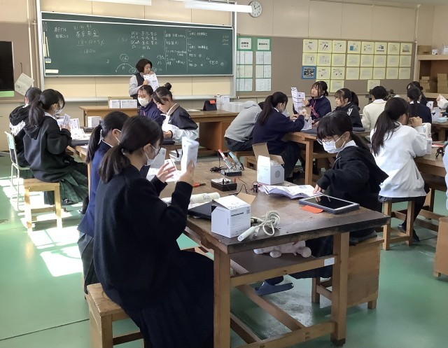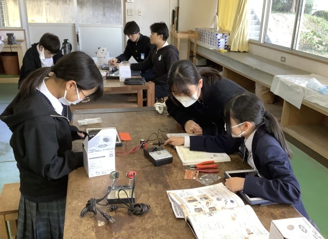 12月9日、2年生が技術でラジオを作って電気回路の学習をしています。教科書を見ながら電圧計を使って、電圧の測定の仕方も学びました。