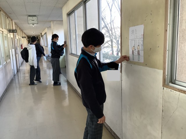冬は風邪の流行する季節です。保健委員会は「換気をしよう‼︎」のポスターを校内のいろいろなところに貼っていました。