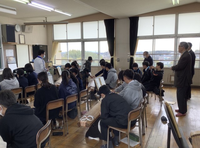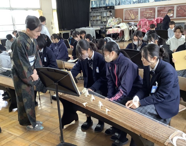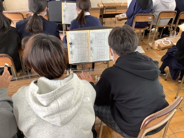 1月29日、筝体験の2時間目の授業を受けました。筝大師範の近藤直子先生に、明日30日まで2年生が教えていただいています。