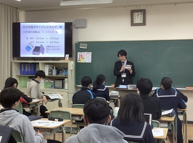 2月17.18日、町給食センターの栄養教諭の方を講師としてお迎えして、3年生が栄養指導の授業を受講しました。