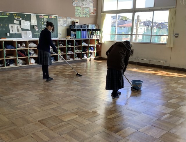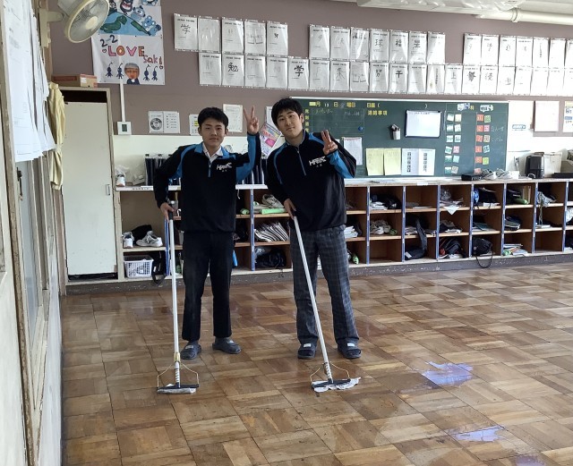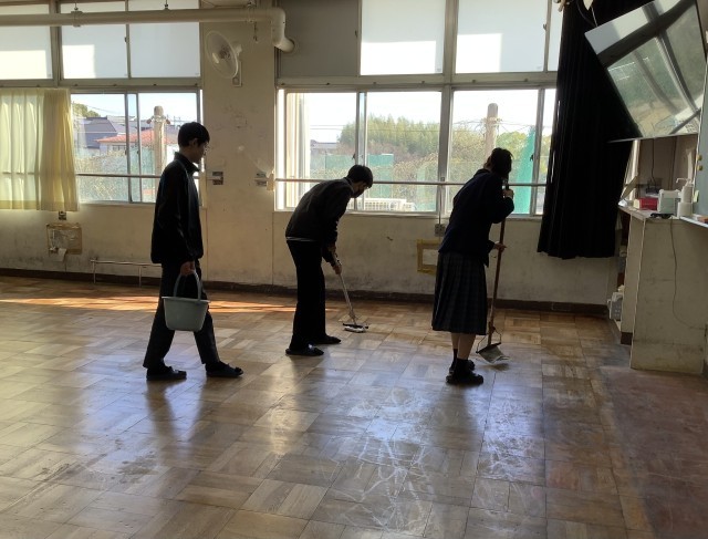 3月12日、1.2年生がワックスがけを行いました。