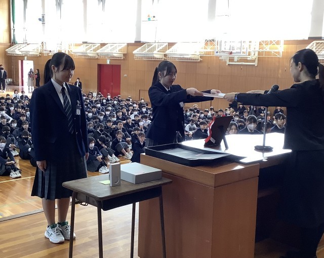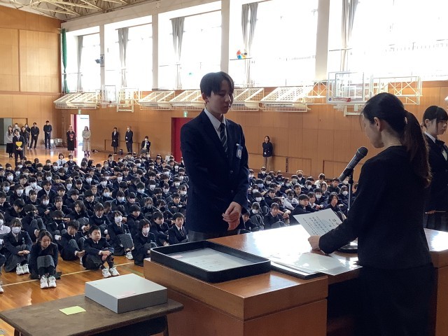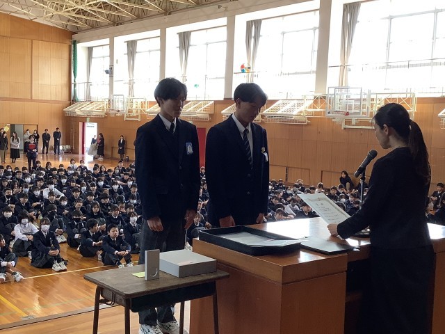 表彰 生徒会役員任命 修了式