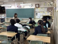 6時間目に各教室で、大型テレビを使い、オンラインで行われました。