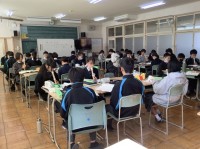 廊下に2年生が美術で作製した「風景に思いを重ねて」の上手な作品が展示されています。